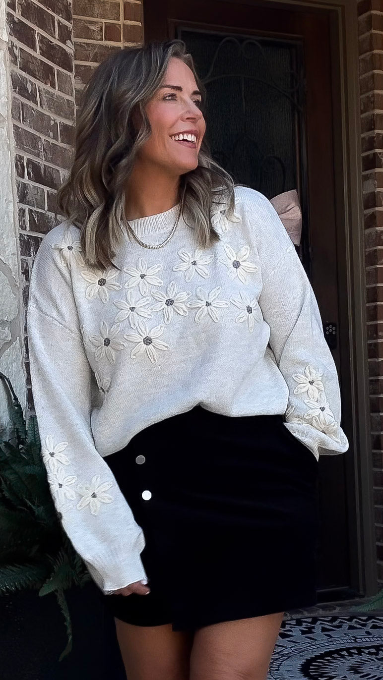 This Flower Embroidered Top offers a lightweight, breezy feel with a loose fit that keeps you comfortable all day. The delicate floral embroidery adds a charming touch, perfect for adding a playful pop to your outfit. Our model wears a small, showcasing the top’s relaxed silhouette that moves with you.