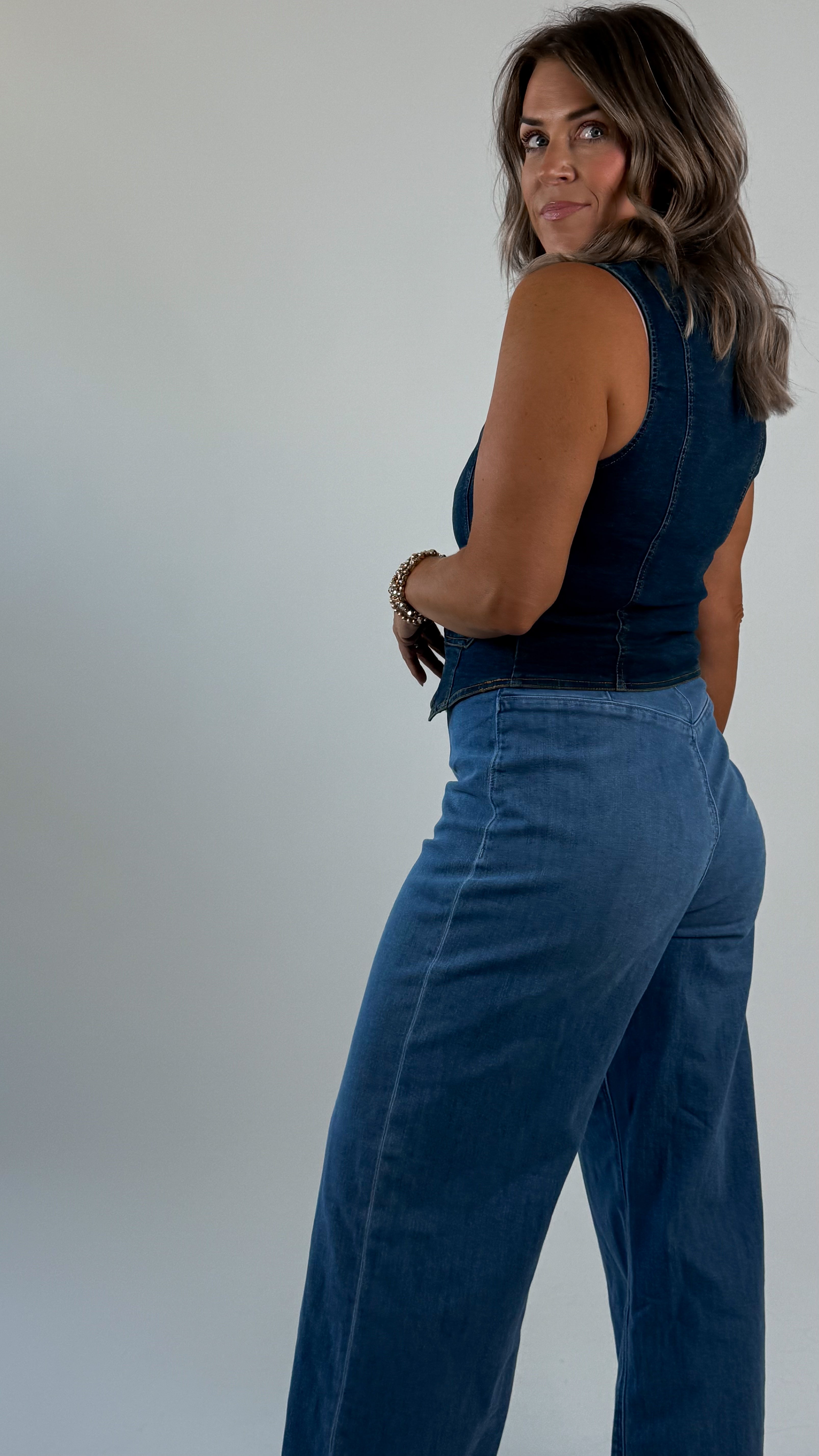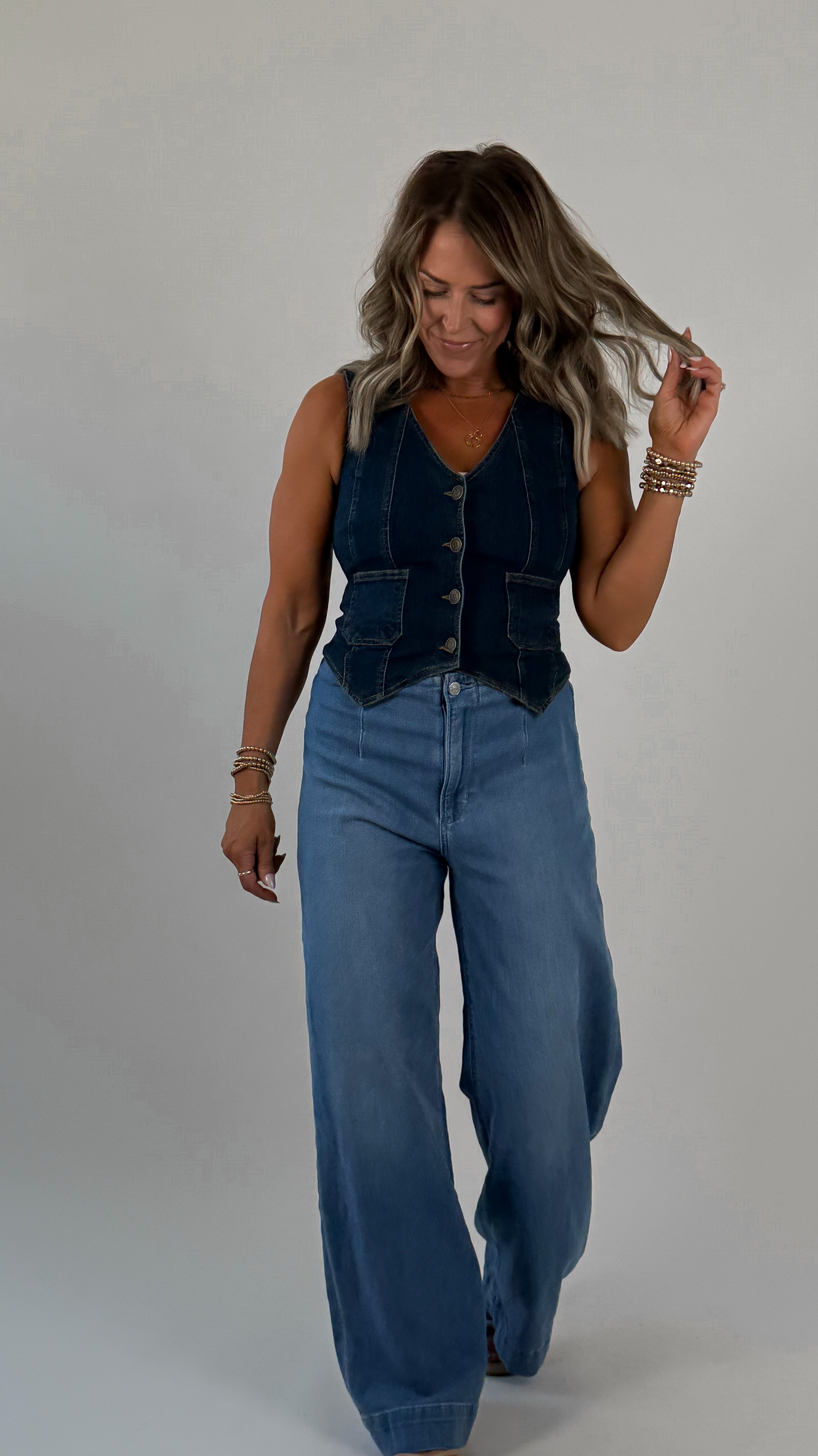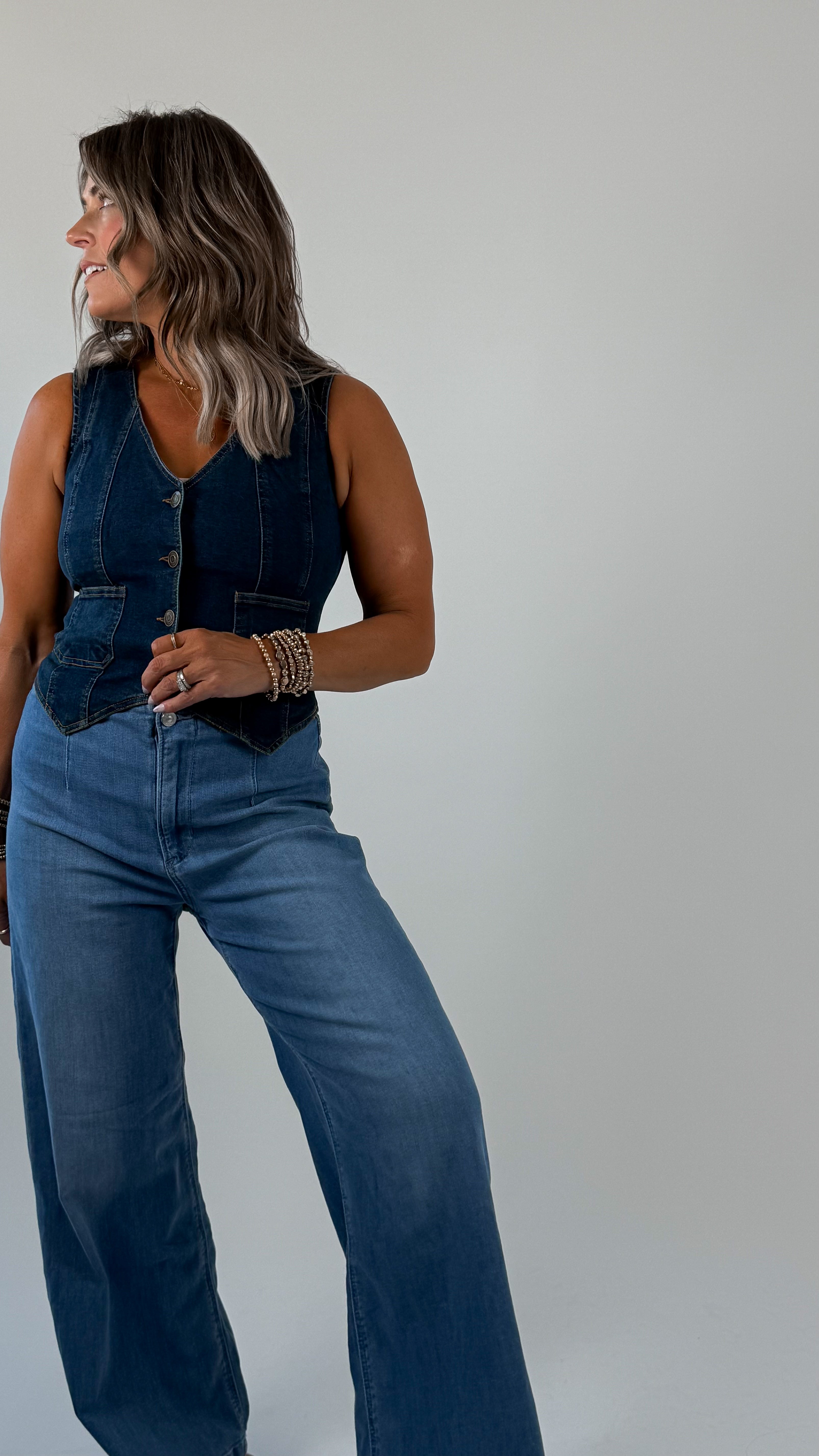 Add a fun twist to your wardrobe with this Button Denim Vest crafted from stretchy denim for extra comfort and movement. Perfect for layering over your favorite tees or dresses, it brings a playful edge while keeping you snug and stylish all day long.
